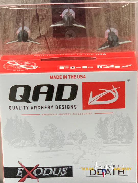 Exodus broadheads are 100% designed and manufactured in the good ol’ USA. The revolutionary compact head gives it the strength to bust through the toughest bones. By matching the length of a field point, the Exodus acheives accuracy never before experienced from a fixed blade. With razor-sharp, durable blades and a steep cutting angle, the Exodus tops the broadhead market in penetration. With heavy duty SST material, you never have to worry about the blades holding up as they bust through and knock down the biggest animal you dare to challenge.