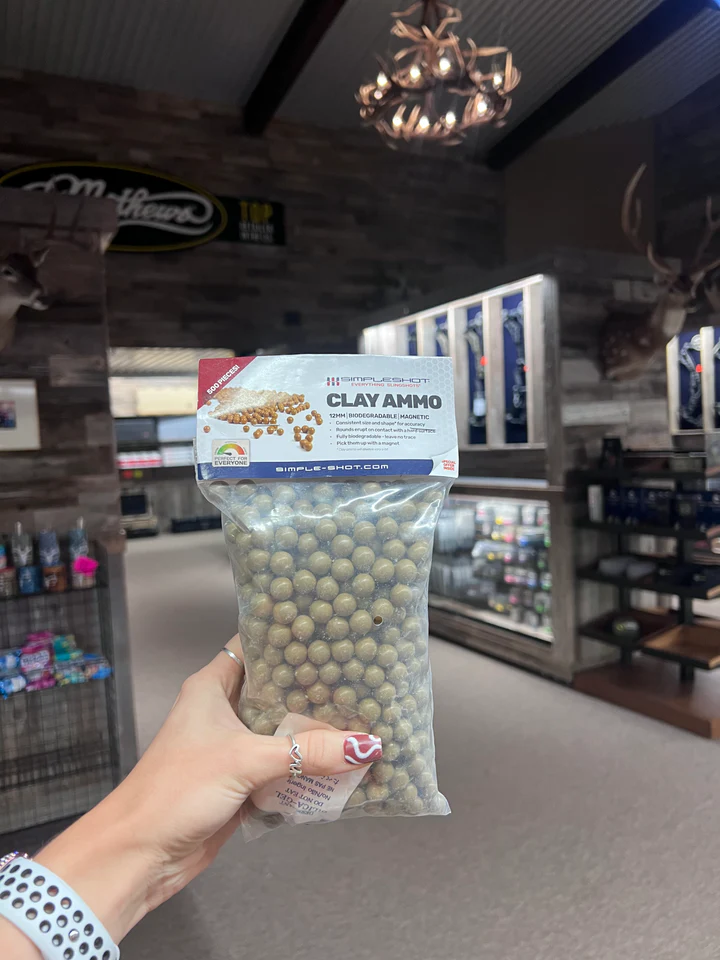 SimpleShot Clay Ammo is ideal for inexpensive plinking and shooting in areas where leaving steel ammo behind would be a problem. Made from biodegradable clay, these projectiles fly great without any worry about litter.